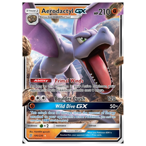 Aerodactyl GX com pose pré-histórica e visual agressivo.