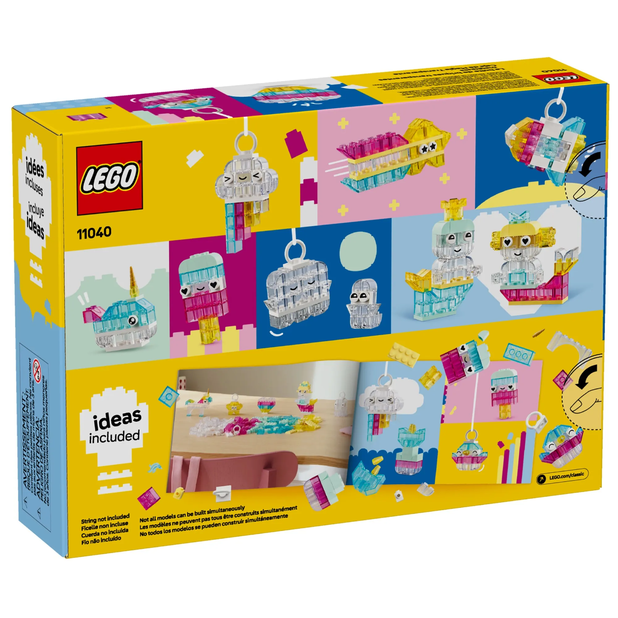 As crianças começam construindo brinquedos de coração, fantasma, sereia, estrela e unicórnio. Conforme sua confiança aumenta, elas passam para uma nave espacial, nuvem, estrela cadente, pássaro, narval, sorvete e flor. Em seguida, elas podem aumentar a diversão criativa com um grande castelo e brinquedo de dragão. Tijolos translúcidos, peças para olhos e boca e tijolos de cabide para exibição adicionam brilho transparente e diversão criativa extra às criações das crianças.
