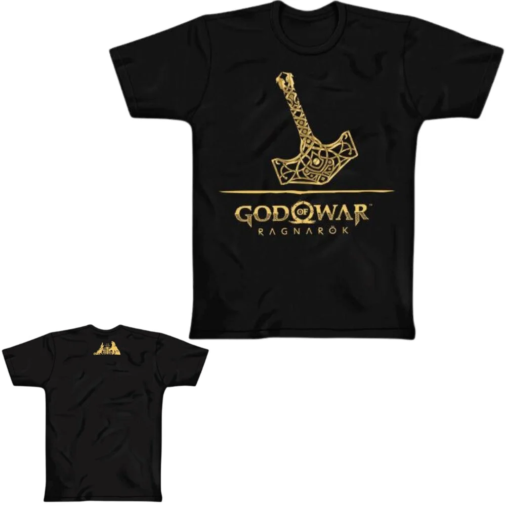 Inspirada no épico confronto de Kratos e Thor em God of War: Ragnarok, esta peça traz uma arte impressionante do lendário Mjölnir, o poderoso martelo do Deus do Trovão. Com detalhes ricos e um design marcante, a camiseta é perfeita para fãs que desejam carregar consigo o espírito de batalha e a grandiosidade dessa saga icônica.