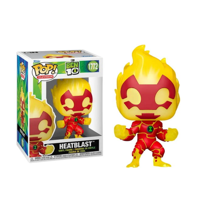 O visual segue o padrão clássico da Funko, com traços simplificados e cabeça em tamanho maior, mantendo detalhes marcantes como o símbolo do Omnitrix no peito e a postura de combate, com punhos cerrados prontos para a ação.