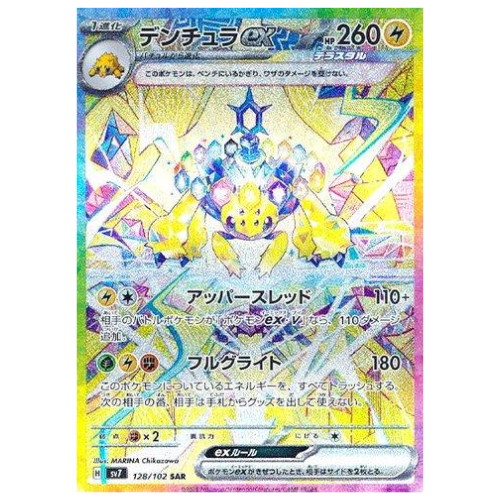 Pokémon elétrico e inseto em versão EX brilhante, com destaque para o traço luminoso e o visual agressivo. Item valorizado em coleções temáticas de tipo elétrico.