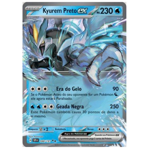 Kyurem Preto em pose épica, arte de gelo e sombra em equilíbrio. Um visual de poder e raridade.