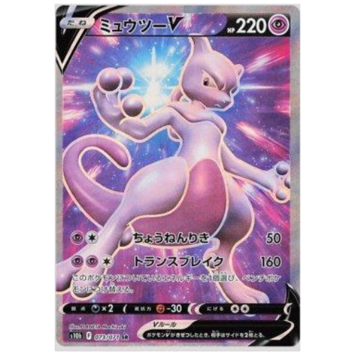 O lendário Pokémon psíquico em sua forma V, retratado com intensidade e poder mental absoluto. A arte detalhada e o brilho vibrante fazem desta uma carta icônica, símbolo de força e mistério, indispensável em qualquer coleção lendária.
