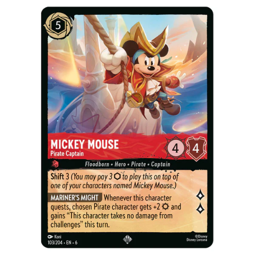 Ilustração de MICKEY MOUSE em destaque, com traços marcantes e cores bem trabalhadas, uma carta que valoriza qualquer coleção.