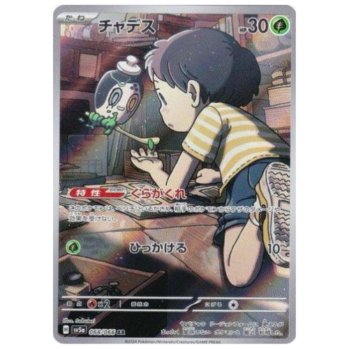 Pokémon fantasma inspirado na cultura japonesa do chá, retratado em uma arte detalhada e atmosférica. Carta charmosa e altamente colecionável.