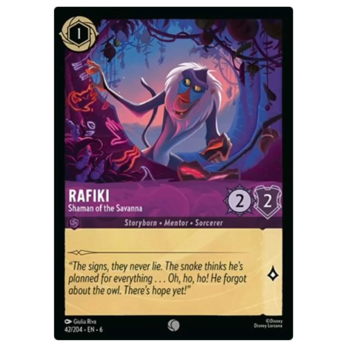 Rafiki aparece místico em meio a símbolos e natureza, com paleta vibrante e ar espiritual.