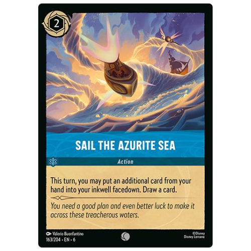 Navios flutuam sobre um mar cristalino, refletindo o céu turquesa e ondas iluminadas por magia.