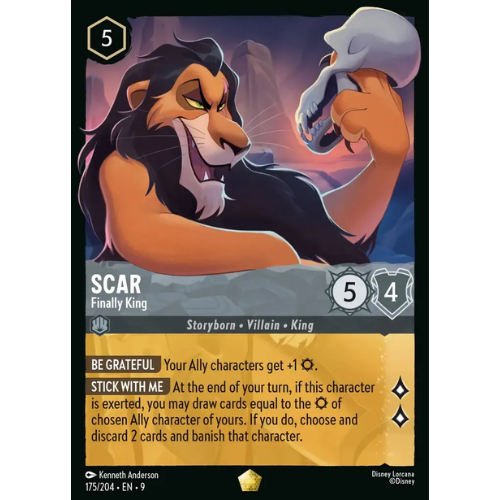 Scar com expressão ameaçadora e arte dramática.