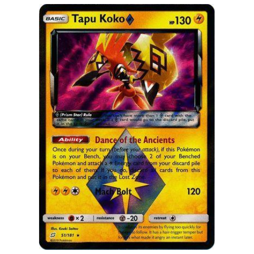 Brilho celestial com velocidade relâmpago! O Tapu Koko Estrela Prisma (51/181) entra em campo com energia eletrizante e habilidades únicas, perfeito para treinadores que valorizam jogadas rápidas, impacto estratégico e uma presença lendária com aura divina! ⚡????????️